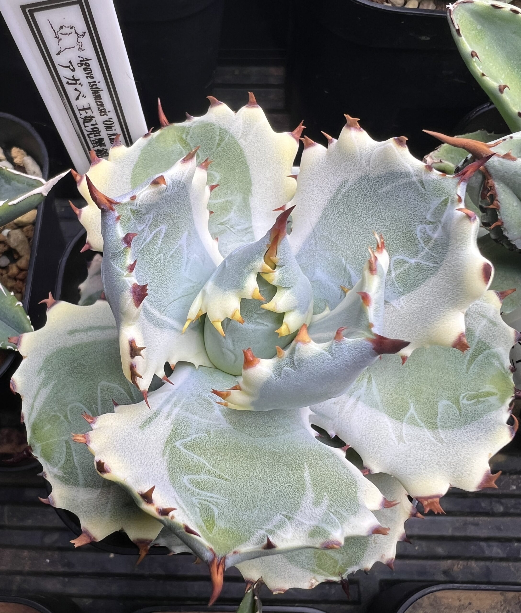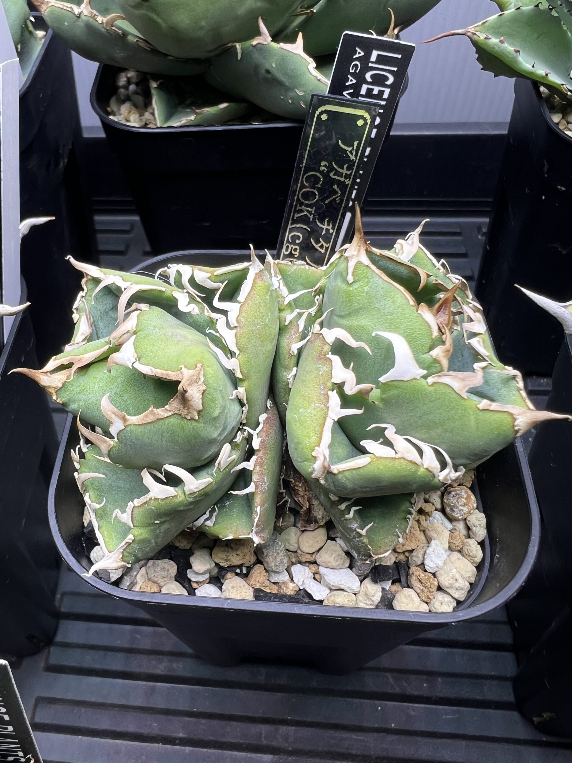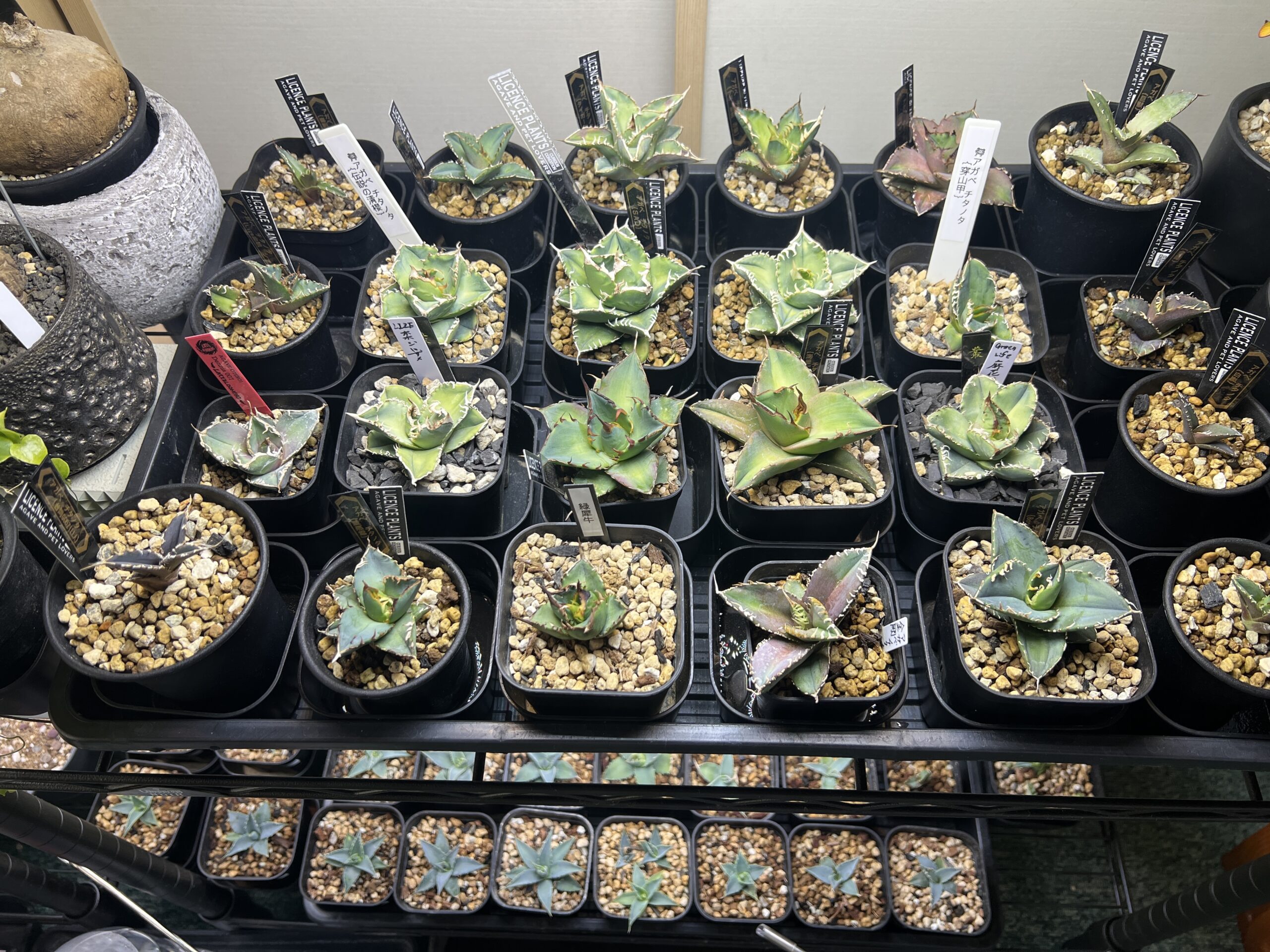 ライセンスプランツのインスタライブオークションが3月からはじまり、毎週火曜日はライセンスの日という流れになり、夜な夜な落札しては翌日に店まで取りに行って、おかわりのアガベを買うというパターンが出来上がった。かれこれそのパターンで40株ほど増えたのだった。やや高級ネームドとしては台湾ゴジラ、白嵐、狂門牛、藍悪霊などなどを迎えた。